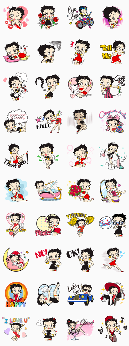 迷倒眾生的貝蒂娃娃,要到貼圖小舖上繼續展露她性感可愛的魅力囉!趕緊下載這組貼圖,讓您與好友傳訊時刻更將歡樂吧!