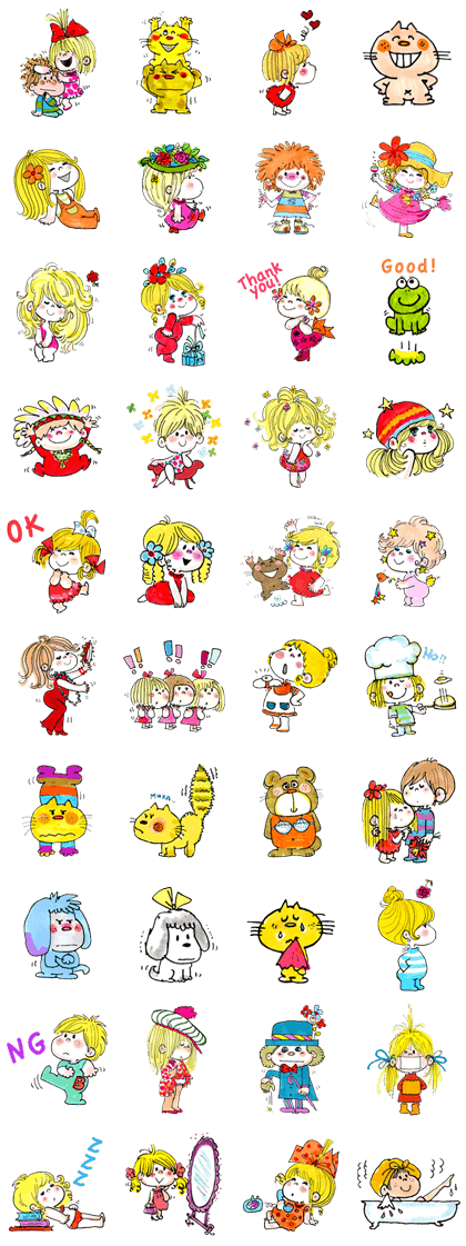 水森亞土帶來第2組表情貼圖囉!在聊天室傳送這些天真無邪的笑顏,心情也會快樂地飛起來呢♪