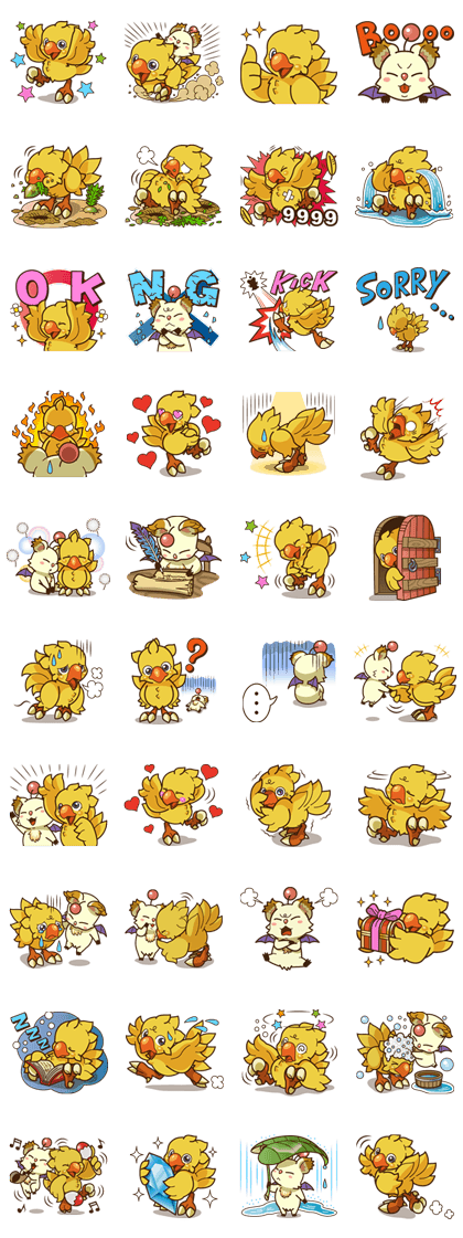 「太空戰士」裡廣為人知的陸行鳥於貼圖小舖中與您見面囉!快來在聊天室內使用這些可愛的表情,傳達各式心情吧!