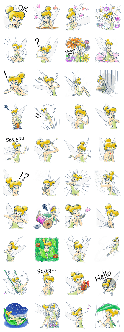 在《小飛俠》中登場的可愛妖精「奇妙仙子」的貼圖登場了!無論什麼表情都好迷人,能夠立即擄獲女孩的心。記得在聊天室使用,讓您的對話更可愛喔♪