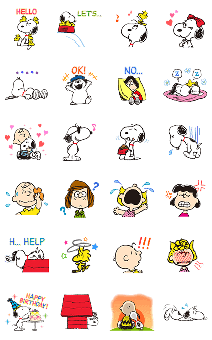 史努比和PEANUTS夥伴們變成會動的貼圖囉!快用表情豐富的史努比讓您的聊天室變得更歡樂吧♪